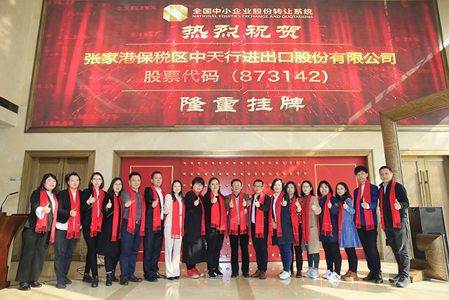 新的征程,中天行完成企業(yè)股份改制,2019年1月,張家港保稅區(qū)中天行進(jìn)出口股份有限公司正式掛牌成為新三板企業(yè)( 企業(yè)簡稱: 中天行, 股票代碼: 873142),掛牌儀式在北京全國股份轉(zhuǎn)讓系統(tǒng)儀式大廳隆重舉行。中天行能夠成功掛牌新三板,意味著中天行公司步入了產(chǎn)業(yè)經(jīng)營和資本經(jīng)營雙輪驅(qū)動的快車道,為公司能夠持續(xù)經(jīng)營和發(fā)展未來注入了更強(qiáng)大的力量。中天行新三板掛牌,既是對我們已有發(fā)展成果的認(rèn)可,也是一個新的征程。企業(yè)將以新三板掛牌為起點(diǎn),以滿足不同層次房 車用戶的需求為目標(biāo),嚴(yán)格按照政策法規(guī)要求穩(wěn)步發(fā)展,凝心聚 力,努力拼搏,以優(yōu)秀的業(yè)績來回報股東,回報社會。