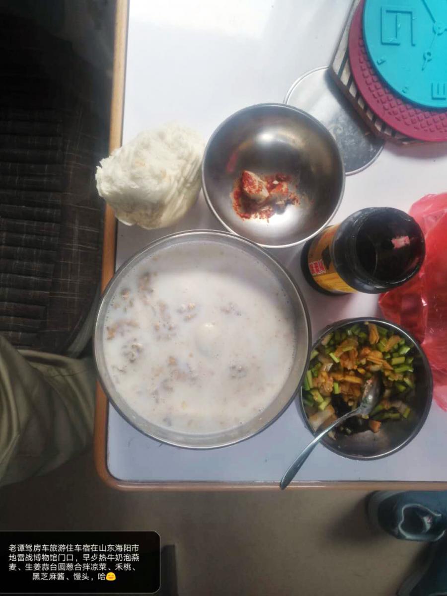 將進(jìn)口依維柯底盤房車停在地雷戰(zhàn)博物館門口,老伴兒在車上自帶的廚房準(zhǔn)備早餐,熟牛奶泡燕麥、生姜蒜薹圓蔥拌涼菜、禾桃、黑芝麻醬、饅頭……不多時(shí),家常飯菜就端上了桌,干凈衛(wèi)生不說(shuō),隨時(shí)隨地都有家的歸屬感!