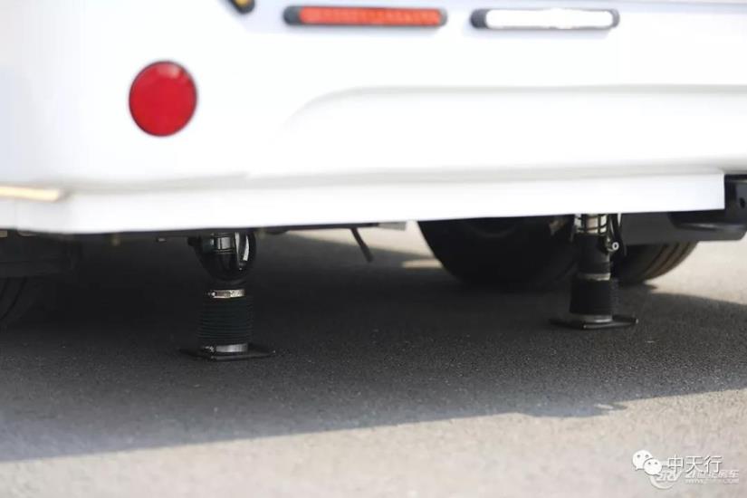 車尾背上了一個(gè)“小書包”,這是它的備胎。這款車同時(shí)還配備了電動(dòng)駐車支腿和拖車臂。值得一說(shuō)的是,當(dāng)駐車支腿處于打開的狀態(tài)下,用戶在駕駛室內(nèi)是啟動(dòng)不了發(fā)動(dòng)機(jī)的,這是因?yàn)樵O(shè)計(jì)者對(duì)它和車內(nèi)的發(fā)動(dòng)機(jī)做了一個(gè)聯(lián)動(dòng)的處理,用來(lái)保障用戶的行車安全。