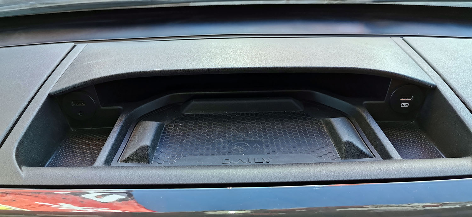 駕駛室飛翼設計的儀表臺做了個性化改裝,提升了內飾的檔次感。中控區(qū)配備自動空調、GPS導航一體機,帶倒車雷達、攝像、影音等功能。中控區(qū)上方儲物格還帶手機無線充電功能。該車還安裝了電子手剎。