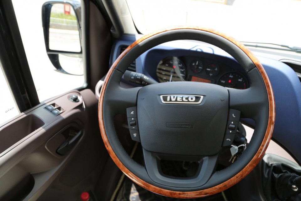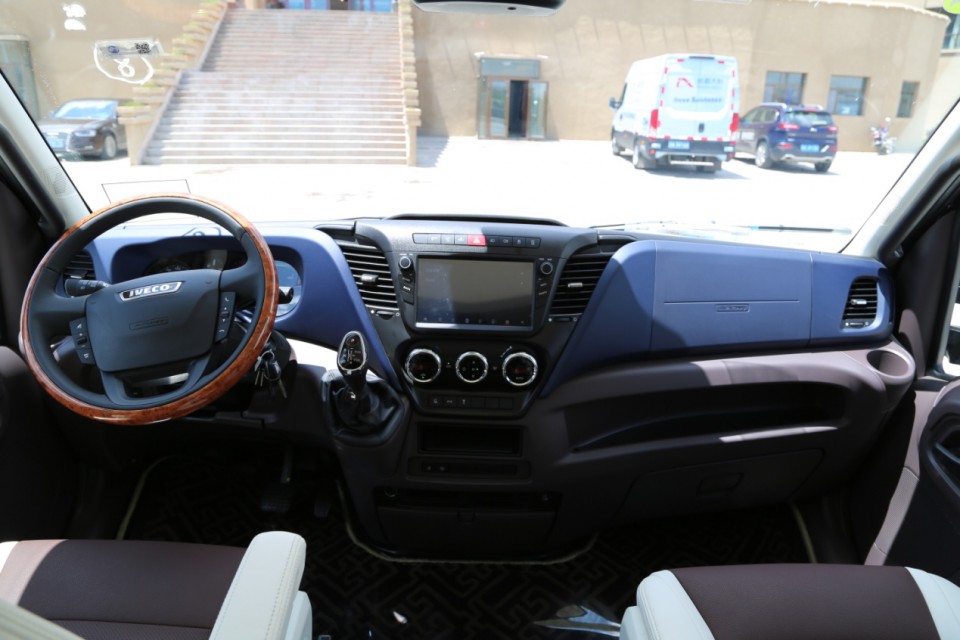 進口依維柯B型房車在原有New Daily的駕駛室基礎(chǔ)上進行了一些內(nèi)飾升級,升級的多功能桃木方向盤更具精致感,方向盤兩側(cè)的多功能按鍵非常實用,可控制多媒體系統(tǒng)及藍牙電話。