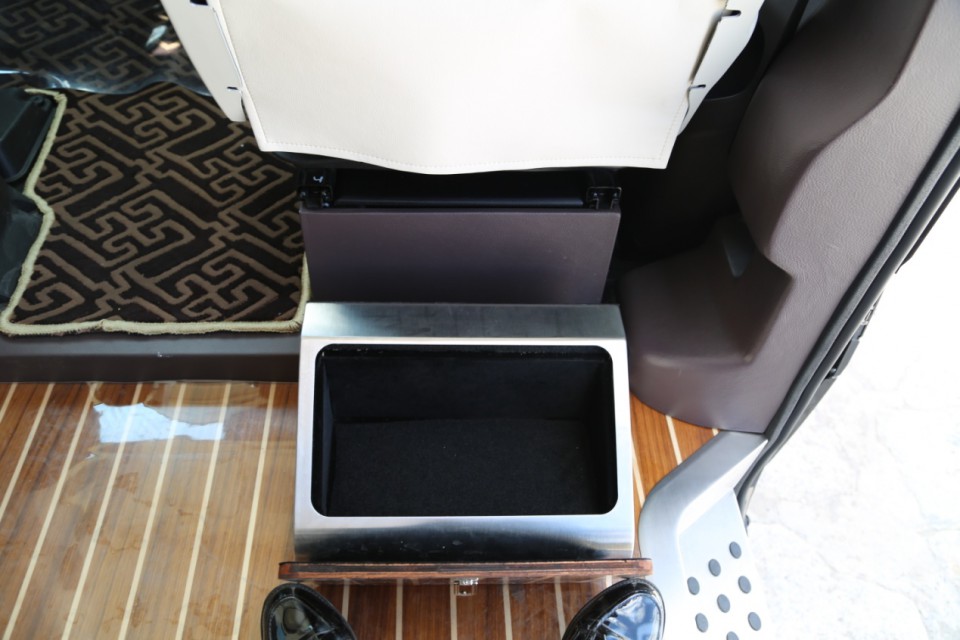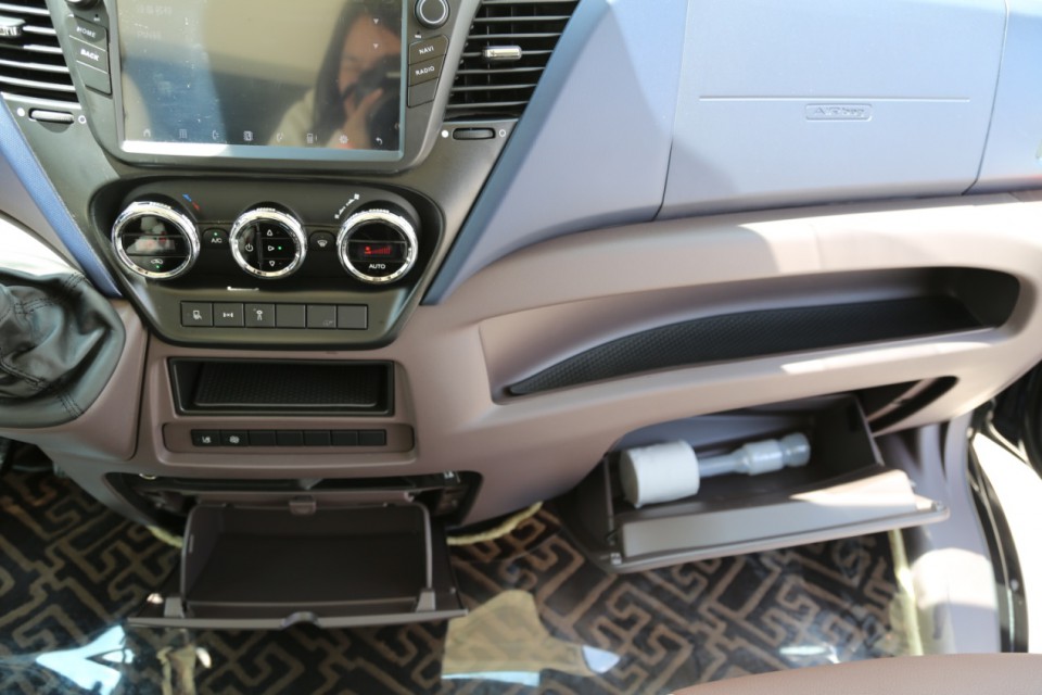 作為高端商務(wù)車怎能缺少辦公座板,此車采用電動隱藏式折疊桌板,節(jié)約空間的同時也非常方便。