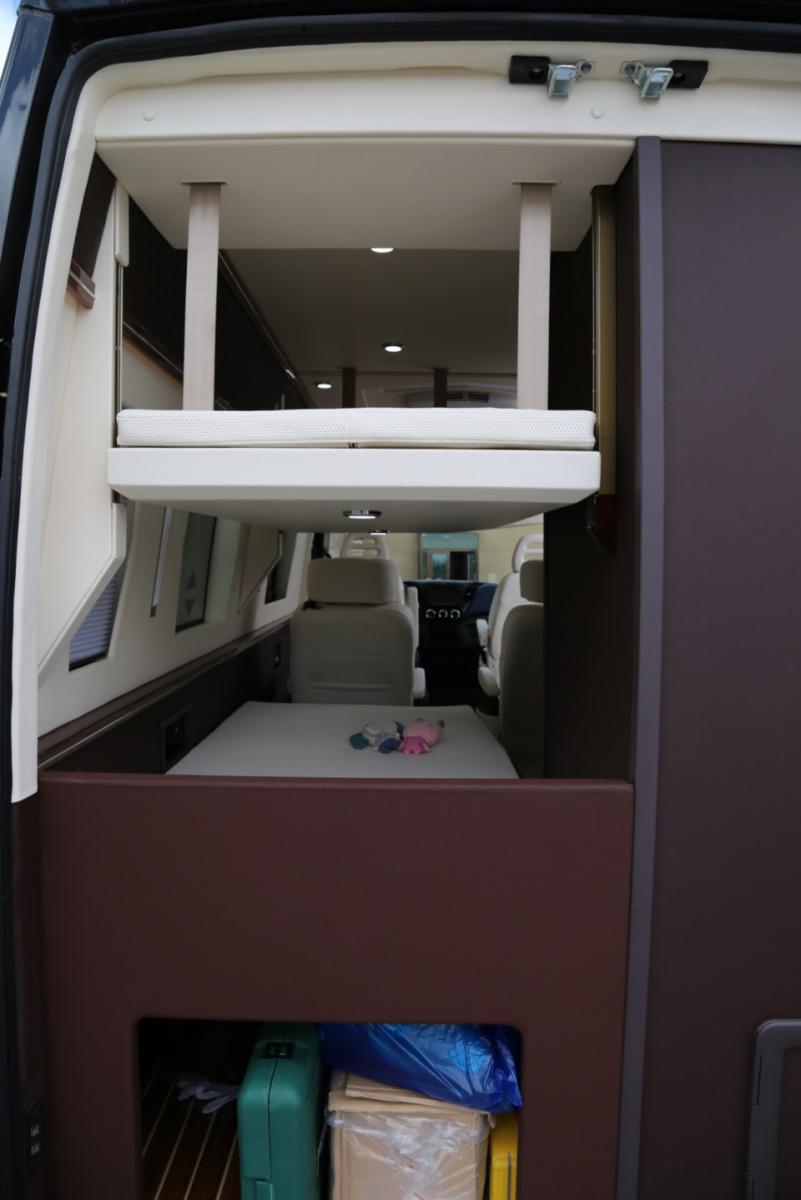 從整體上看車廂內(nèi)部空間設(shè)計非常清晰,內(nèi)飾設(shè)計其中一大亮點是采用電動升降床布局,實現(xiàn)了空間的最大化利用,車廂中部為2個航空座椅,向后依次為廚房區(qū)、上下床及整體式衛(wèi)生間,空間布局合理,空間利用率較高。