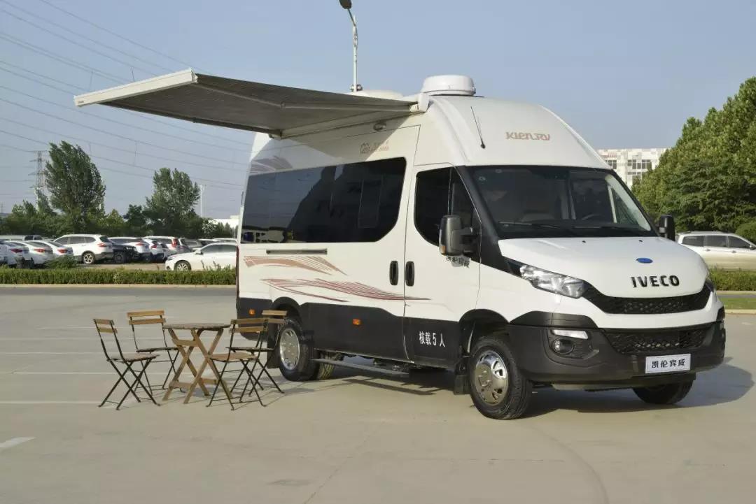 車身側面配備了遮陽棚,為停車賞風景的你遮陽擋雨。車身尺寸為:5963×2010×3030mm,車廂內高1930mm,軸距為3520mm。