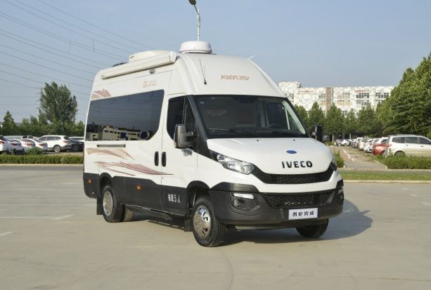 該車是基于進口依維柯New Daily為基礎平臺研發(fā)的一款高端B型房車產品。外形方面保持了商務車的風格,采用極簡的設計,黑白雙色的搭配,簡約而又彰顯格調,紅色的車身彩貼畫龍點睛,讓整車更為大氣。