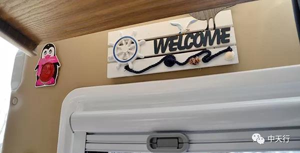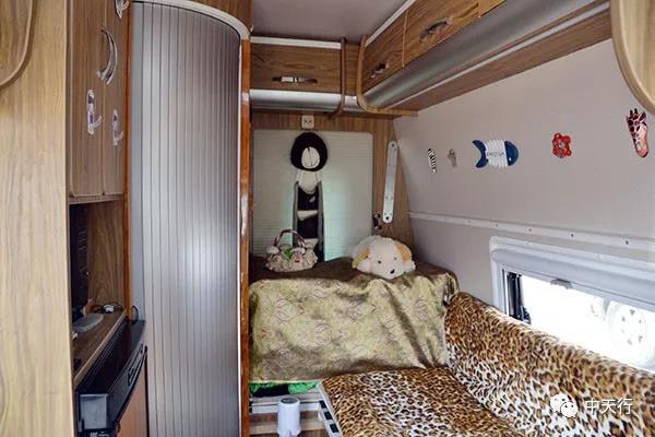 “女人就得寵,越寵越有種”,在車友譚旭東和夏阿姨的進(jìn)口依維柯B型房車上,貼著很多卡通小貼畫,而這句話正對著床鋪,抬頭便可以看到,很有情調(diào)。