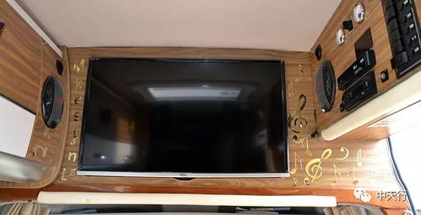 房車內(nèi)飾部分是按照譚先生夫婦的意愿改裝的,很有特色。駕駛室保留了進(jìn)口依維柯原裝風(fēng)格,駕駛室上方為液晶電視,駕駛室與后方車廂為前后貫通式結(jié)構(gòu),打開車門便是會客區(qū),兩個面向門的沙發(fā)很舒適,沙發(fā)中部為升降桌。