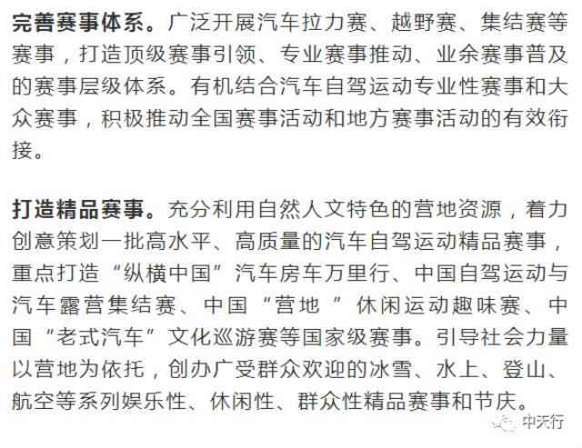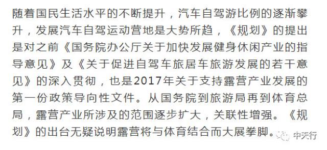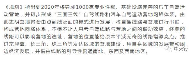 為加強(qiáng)《規(guī)劃》的落地實(shí)施,2018年6月體育總局辦公廳發(fā)布《關(guān)于加快推動(dòng)汽車自駕運(yùn)動(dòng)營地產(chǎn)業(yè)發(fā)展的通知》?!锻ㄖ吩诙喾矫鎸?duì)于《規(guī)劃》的落地提出了具體的數(shù)據(jù)要求和方向。