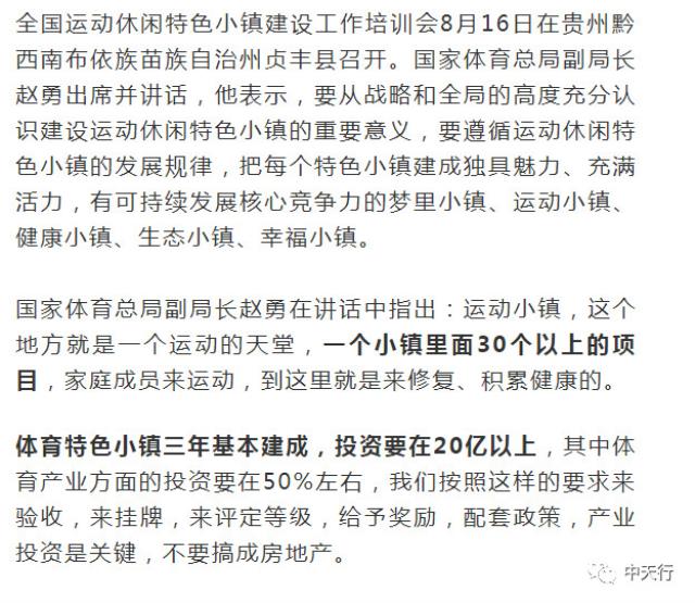 2017年5月9日,體育總局辦公廳下發(fā)《關(guān)于推動(dòng)運(yùn)動(dòng)休閑特色小鎮(zhèn)建設(shè)工作的通知》(體群字[2017]73號(hào)),啟動(dòng)了運(yùn)動(dòng)休閑特色小鎮(zhèn)建設(shè)工作。經(jīng)對(duì)各省、自治區(qū)、直轄市體育局,體育總局有關(guān)直屬單位和中國足球協(xié)會(huì)推薦的運(yùn)動(dòng)休閑特色小鎮(zhèn)申報(bào)項(xiàng)目進(jìn)行篩選,決定將北京市房山區(qū)張坊運(yùn)動(dòng)休閑特色小鎮(zhèn)等96個(gè)項(xiàng)目列為第一批運(yùn)動(dòng)休閑特色小鎮(zhèn)試點(diǎn)項(xiàng)目。