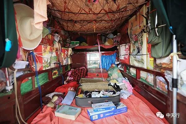 路途上最驚險的一次,是有一次過涵洞的時候,郭景新遠遠看見前面有貨車順利過去了,沒想到水竟然齊腰深,“房車”一下子浮了,里面的東西都濕了。推著車走了半個小時,碰到了修車店。