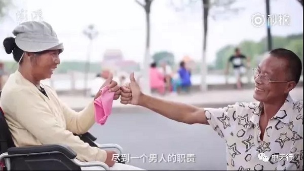 對悉心照顧自己的郭景新,趙嫦花常用左拳捶胸,然后伸出大拇指,對丈夫點贊。