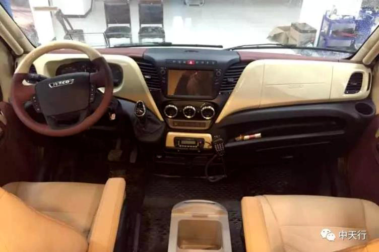 駕駛室對儀表臺、方向盤、座椅做了真皮包覆,中控區(qū)安裝了超大顯示屏,帶導(dǎo)航、倒車影像、影音娛樂功能。全車做工精細(xì),縫制針腳均勻,很有品質(zhì)感!