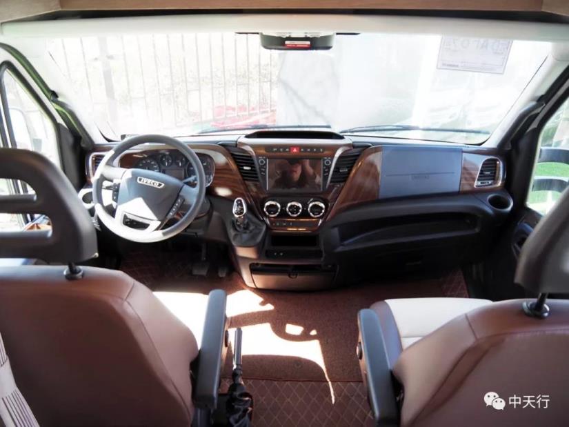 駕駛室儀表臺在進口依維柯New Daily的基礎(chǔ)上進行了個性化改裝,并配備有中控觸摸屏,支持手機互聯(lián)、藍牙連接和導(dǎo)航等功能。駕駛室減震座椅是進口依維柯的標配,角度、高低、背部角度可三向調(diào)節(jié),并且?guī)в屑訜峁δ?、腰部支撐調(diào)整功能,人性化的設(shè)計不僅增加了行駛的舒適性,更能應(yīng)對多種路況的使用要求。
