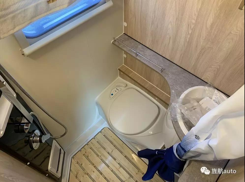 衛(wèi)生間整體布局空間利用最大化,馬桶采用塞特福德的盒式坐便器,提倡環(huán)保用車,文明用車的理念。